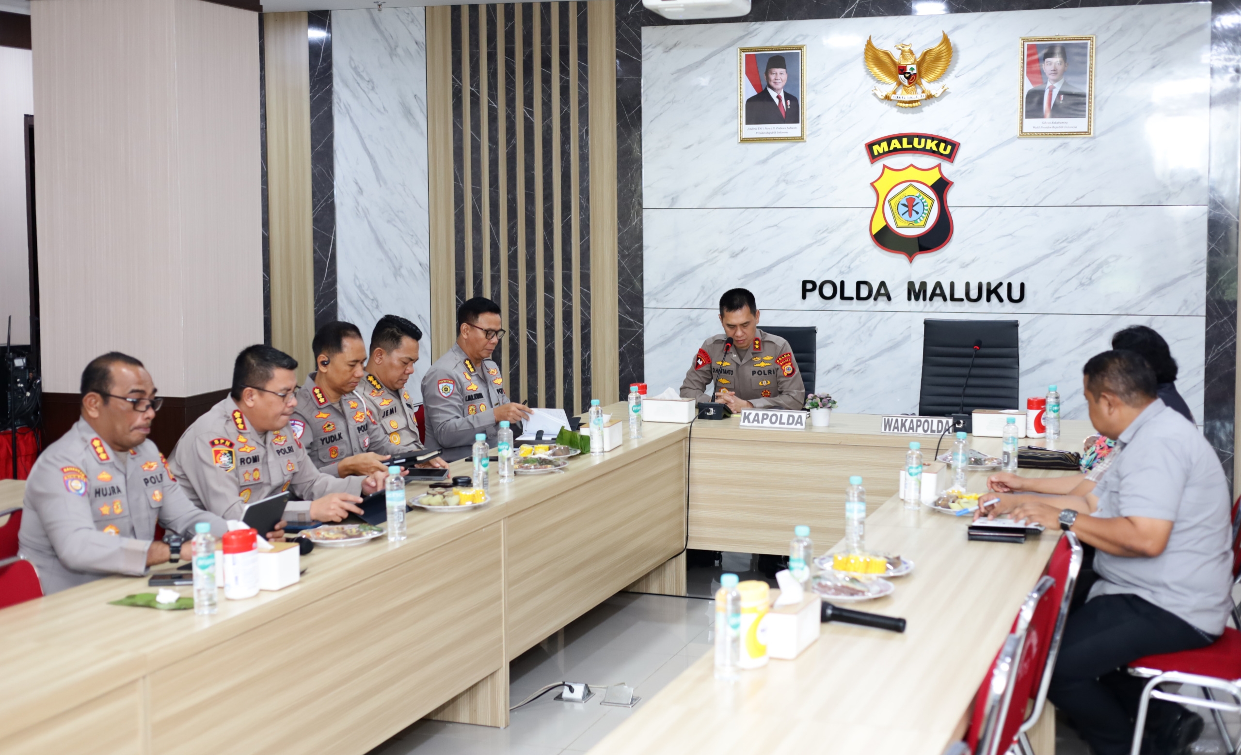Rakor yang digelar di ruang rapat Mapolda Maluku, Jumat (10/4/2026), turut dihadiri Wakapolda Maluku Brigjen Pol. Iman Tobroni, pejabat utama Polda Maluku, serta Kepala Dinas Pendidikan dan Kebudayaan (Dikbud) Maluku bersama jajaran.